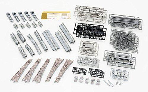 [セット内容]ダミーポイントモーター・切換機台、ワイドレールジョイント、構内踏切パーツ、車両基地パーツA、車両基地パーツB、車両基地パーツC、ホーム端柵など、マルチ複線トラス架線柱、階段、番線表示など