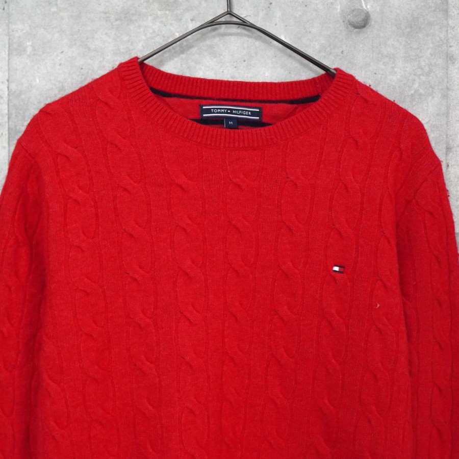 Tommy Hilfiger Cable Knit Sweater with One-Point Logo, Red