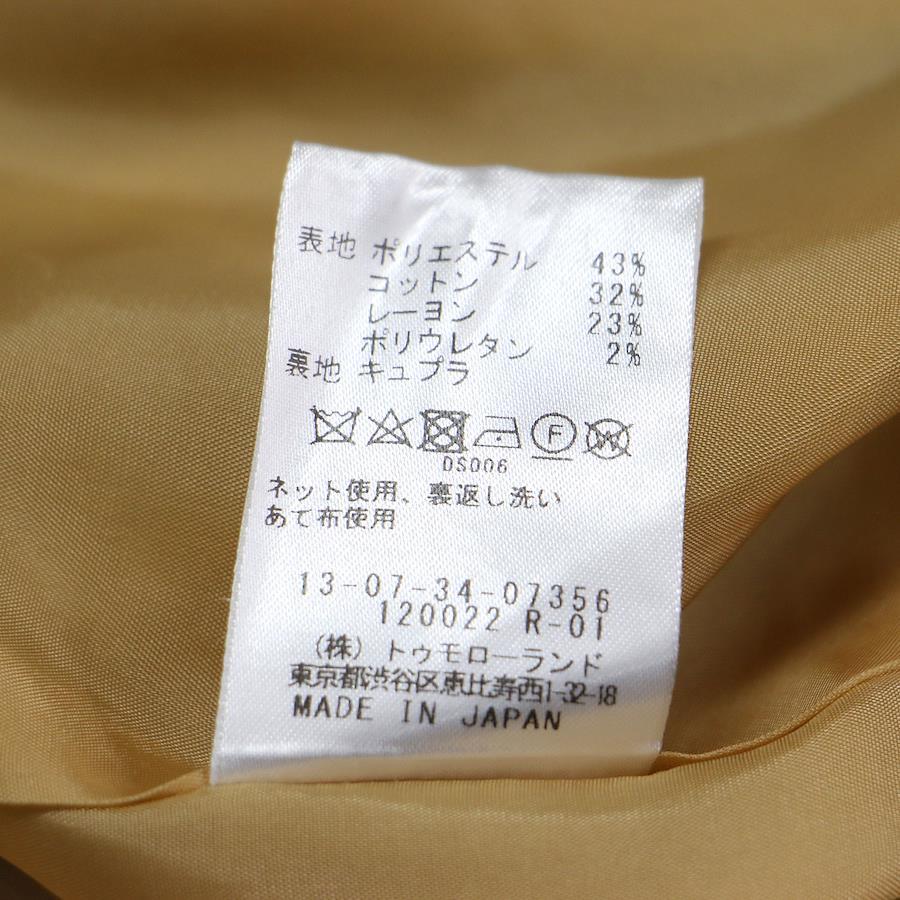 | 素材 | 表地 ポリエステル 43% コットン 32% レーヨン 23% ポリウレタン 2% 裏地 キュプラ 100% |