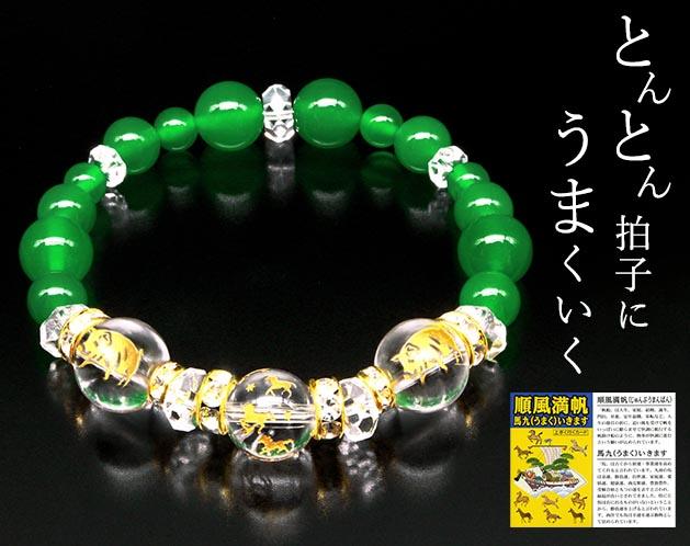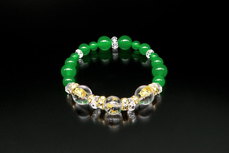 ★豚豚(とんとん)拍子に馬九(うまく)行くブレス!*豚は多産、繁栄を象徴する縁起の良い動物と言われています。風水においても魔除けの他、人間関係を良くするパワーを持っていると言われています。*九頭馬はすべての事が万事馬九行くとされ、1商売、2出世、3縁談、4蓄財、5勝負事、6健康、7夫婦仲、8農漁業、9受験九つの運の上昇の象徴とされています。◇緑メノウ・・・・・ストレス緩和・安定・調和◇白水晶・・・・・願望成就・邪気祓い