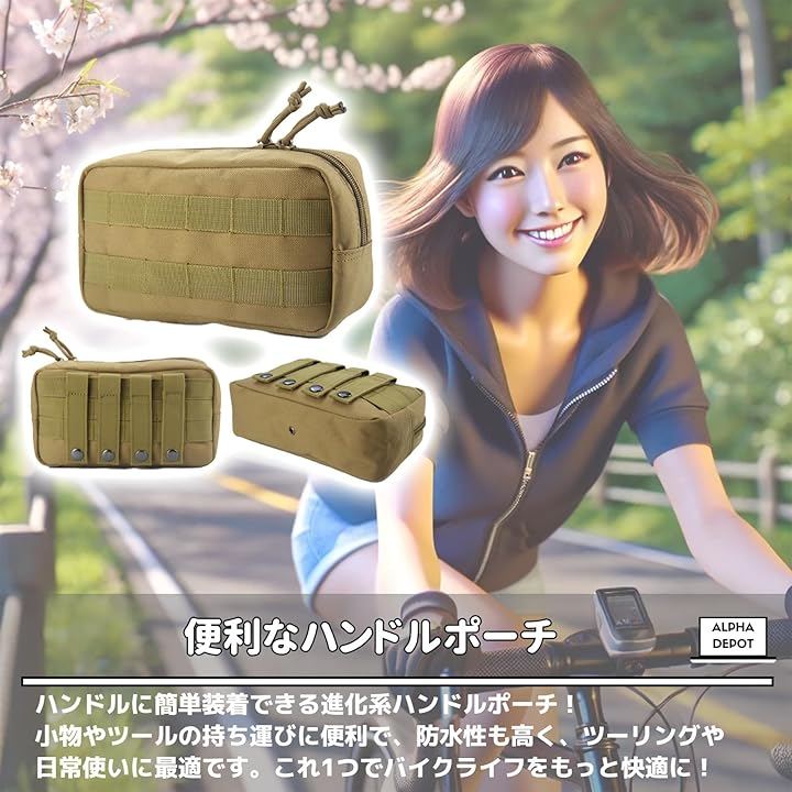 「便利なハンドルポーチ」ハンドルに簡単装着できる進化系ハンドルポーチ。小物やツールの持ち運びに便利で、防水性も高く、ツーリングや日常使いに最適です。
