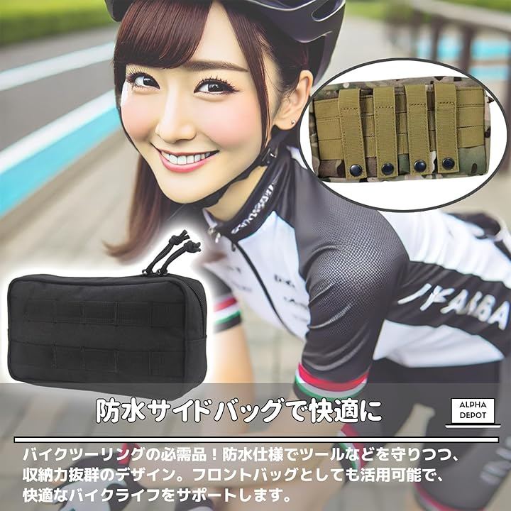 「防水サイドバッグで快適に」バイクツーリングの必需品。防水仕様でツールやスマホを守りつつ、収納力抜群のデザイン。