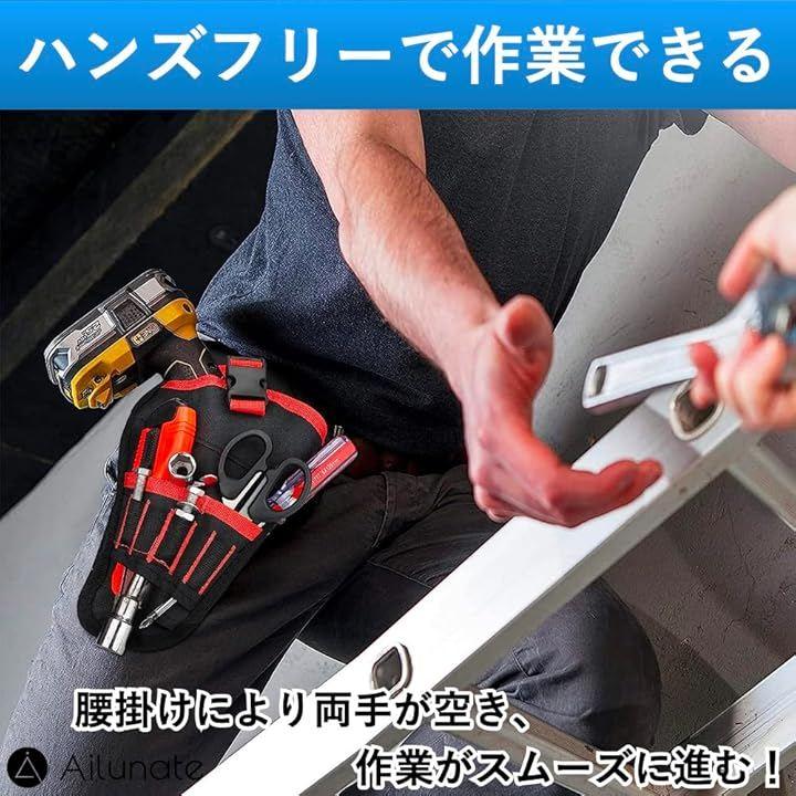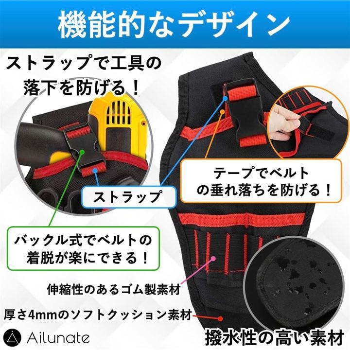 メインポケットには、電動ドライバーや電動工具の落下を防ぐためベルトループがついており、安心して作業を進めることができます。