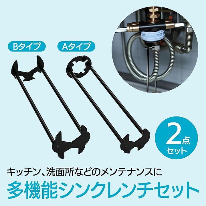 水回りの脱着工具として利用できる多機能シンクレンチのセットです。