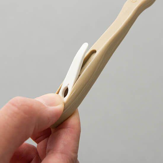 従来の歯ブラシと比べ、生産資源の使用とゴミの排出量を10分の1に抑えられる