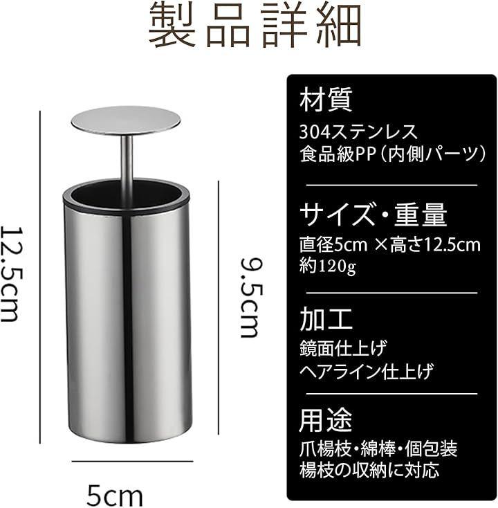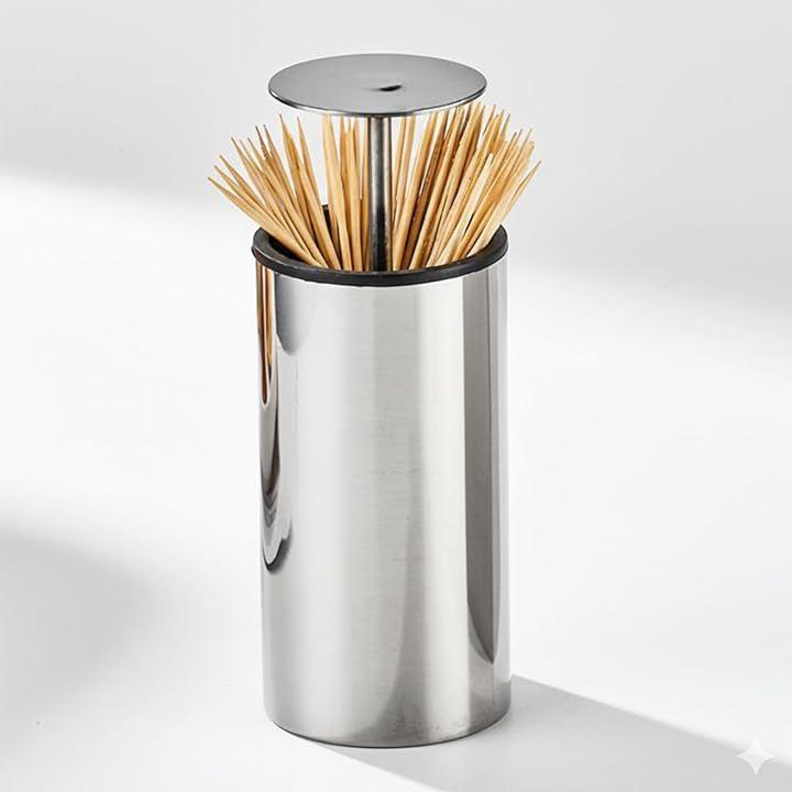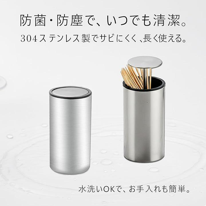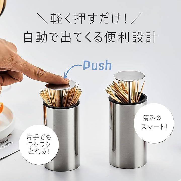 ワンプッシュで自動で飛び出す。必要分を簡単に取り出せるからとっても便利なステンレス製のおしゃれな爪楊枝ケース。防菌機能付きで衛生的に保管できるケースです。
