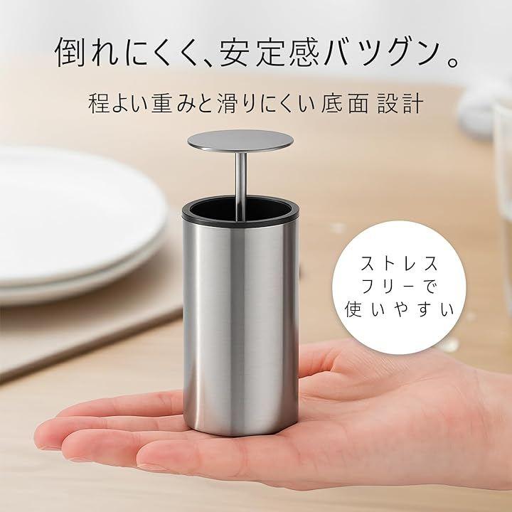 ちょうどよい重さと安定感のある底面設計で倒れにくい仕様だから片手で取り扱う時もストレスフリー。水洗いも可能で長くお使いいただけます。