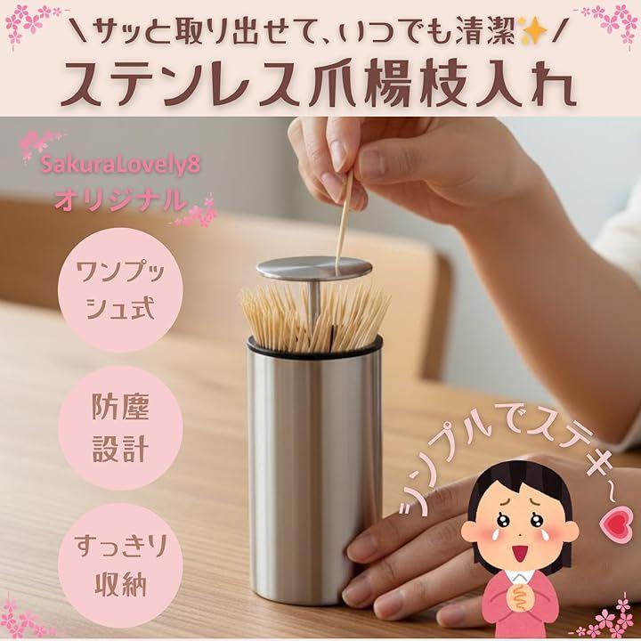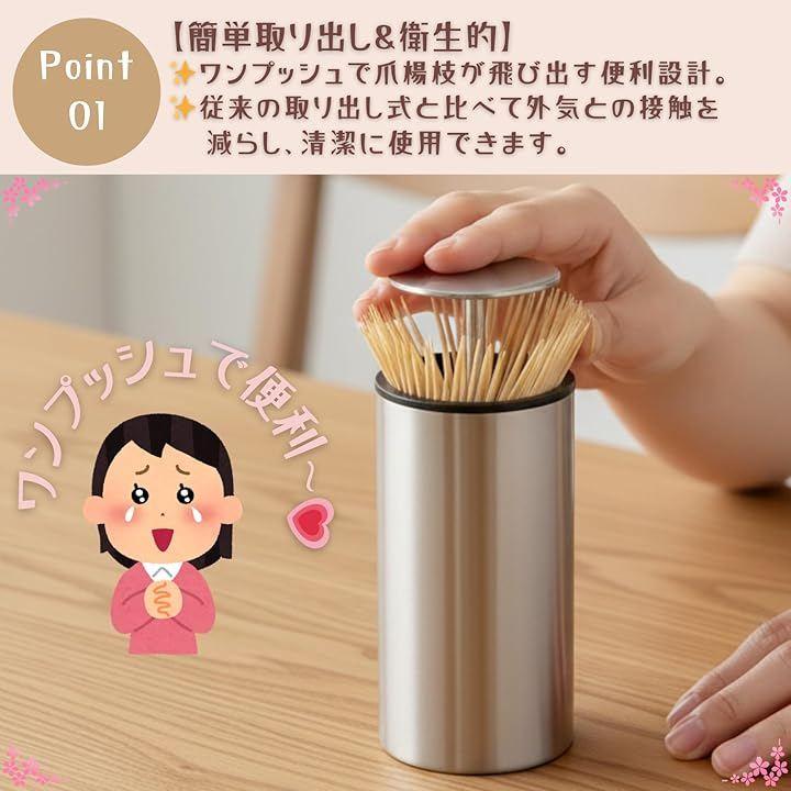 「簡単取り出し&衛生的」ワンプッシュで爪楊枝が飛び出す便利設計。