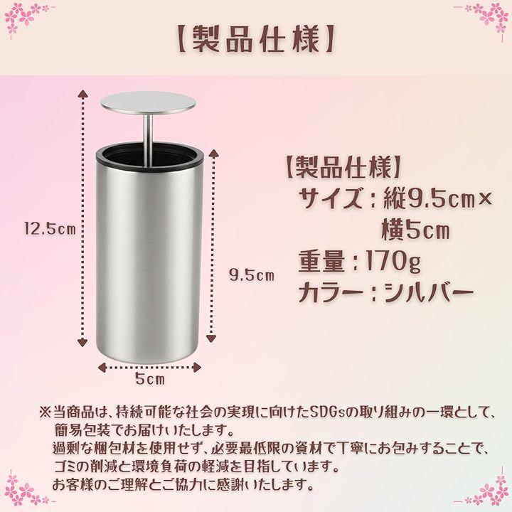 「製品仕様」サイズ:縦9.5cmx横5cm、重量:170g、カラー:シルバー、コンパクトで省スペース設計、家庭やオフィスに最適。