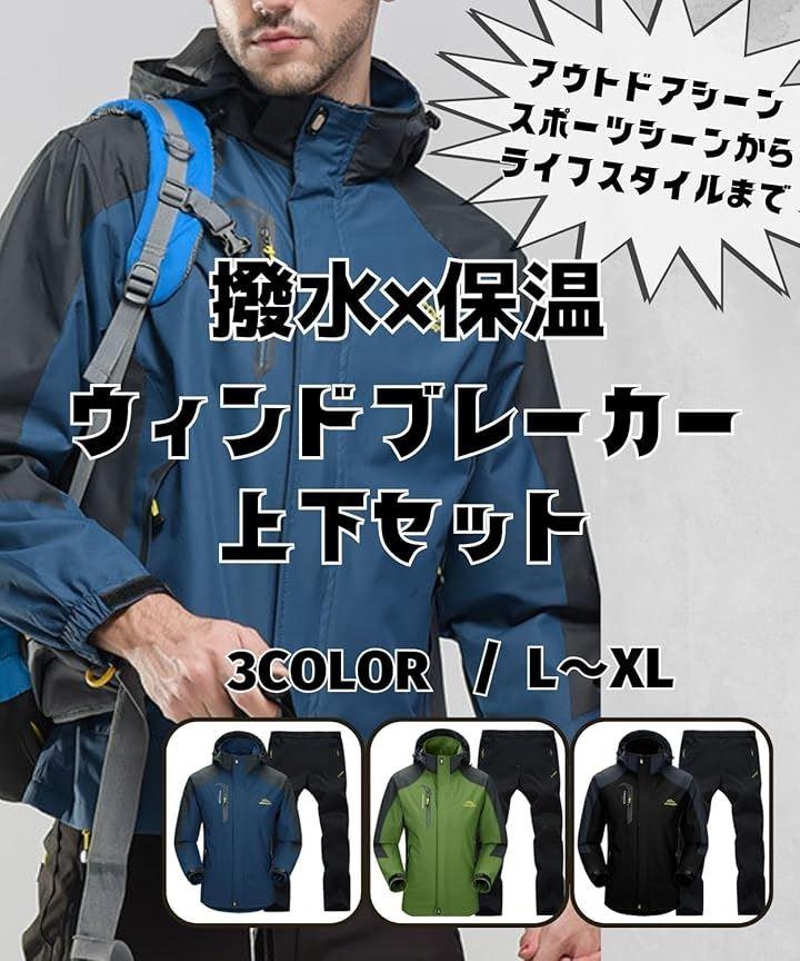 スポーツやアウトドア、街着としても多様な用途に対応するパーカーウインドブレーカーのセットアップです。