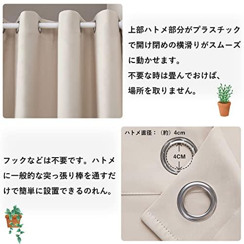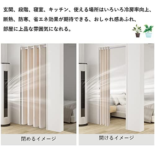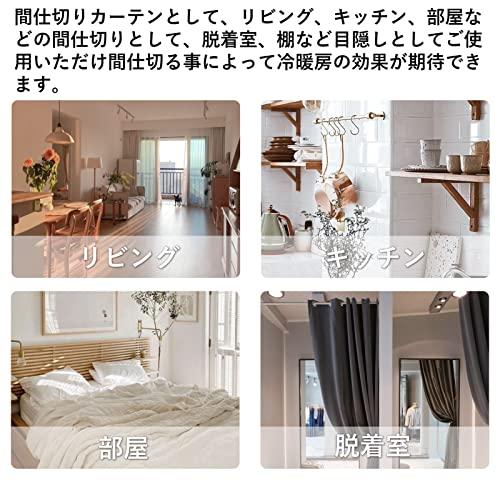 【サイズ】 :幅100cm*丈180cm「幅50cm-66cm範囲の設置場所に適応しております」ハトメ直径:約4cm。 【省エネ】:遮光カーテン、光と紫外線の85%-99.9%を妨げます、断熱・防寒、光を気にせず朝までぐっすり眠れます。冷房率向上、夏は遮熱効果で涼しく、冬は断熱効果で快適! 【生地】:滑らかな100%ポリエステルの生地で、一年中にも使えます。色も落ち着いで、高級感があります。シワが気になる場合は低温でそれをアイロンをかけることができる。 【仕様】:フックなどは不要です。ハトメに一般的な突っ張り棒を通すだけで簡単に設置できるのれん。使用しない時はたたんでおけますので通り抜けの邪魔になりません。 【適用】:いろいろな場所に使えます:階段、玄関、リビング、寝室、ドア、キッチン、脱衣所、他いろいろなシーンでお使いいただけます。