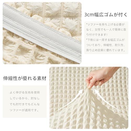 Size: Single Seater: 35.4?47.2 inches (90?120 cm); 2 Seater: 55.1?74.8 inches (140?190 cm); 3 Seater: 72.8?90.6 inches (185?230 cm).Find the perfect fit for your sofa with our wide range of sizes.Choose from sofa cover with armrest or without armrest. Cute and High Quality Polyester: Features a unique bumpy texture that’s durable and soft to the touch, offering exceptional comfort.Scratch and stain resistant, no shrinking even after repeated washing, anti-pilling, doesn’t fade easily, and highly breathable.The elastic material fits snugly on different sofa shapes and sizes, so just spread it and see it fit comfortably without slipping.High quality material for long lasting use. Easy to install by one person: The bottom features a wide elastic band that wraps around the sides, offering great stretchability, durability, and anti-slip performance.Comes with labels on both sides of the back for easy identification of the front and back during installation.Even women can easily install it on their own, since there’s no need to lift the sofa. It can also be easily removed, so you can wash it whenever required and maintain its beauty. Match it with your decor with our wide range of colors: Our sofa covers come in a wide range of colors, so you can choose the one that fits with your decor.Available in a variety of designs, from vibrant colors to muted tones, to easily match with your decor.Instantly refresh your room and add color to your everyday life. Complete Protection for your Sofa: The sofa cover protects your sofa from dirt, scratches, dust and sticky sweat.It also protects your sofa from pet claws, making it perfect for homes with babies, children and pets.Breathable and anti-pilling for all year round comfort. (#lf)(#lf)(#lf)商品購入前に、ストア紹介ページをご確認ください。