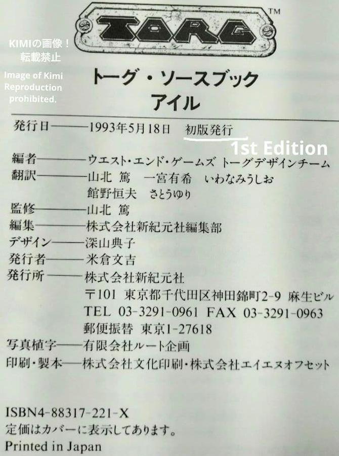 トーグ ソースブック アイル 本 1993 初版 ウエスト エンド ゲームズトーグデザイン (編集), 山北 篤 (翻訳) TORG TRPG 新紀元社TORG Sourcebook Aysle 1993 1st Edition Japanese Book West End Games TORG TRPG Shinkigensha Translated by Atsushi Yamakita