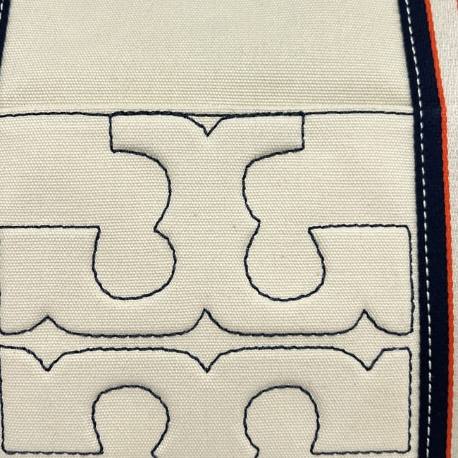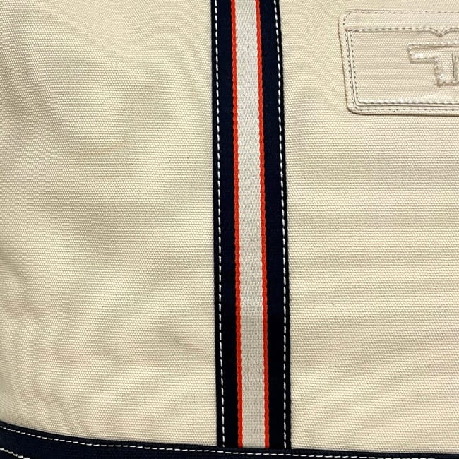 Tory Burch Large Tote Bag, Natural White/Navy, 10005607, Excellent Condition, Canvas Tote Bag, Used.