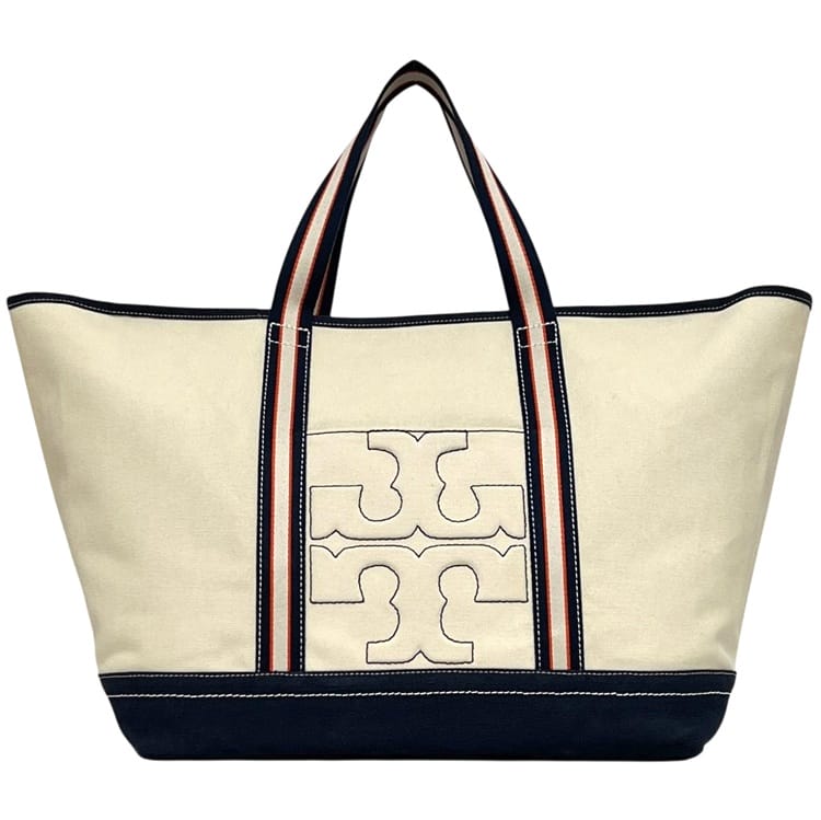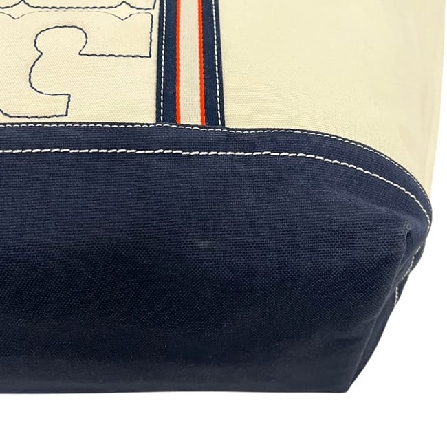☆---- 商品について ----☆トリーバーチ ラージトート ナチュラルホワイト ネイビー 10005607 美品 トートバッグ キャンバス 中古 TORY BURCH