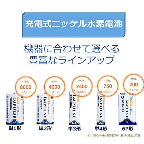 通常1-5営業日で発送:東芝ニッケル水素電池 「充電式IMPULSE」 6P形(9V形) 充電池。1パック1個入り。