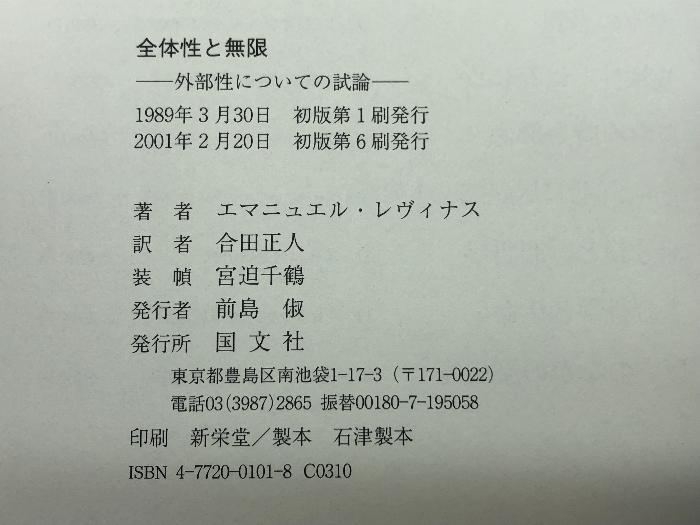 商品名:全体性と無限: 外部性についての試論 (ポリロゴス叢書) 国文社 エマニュエル レヴィナス
