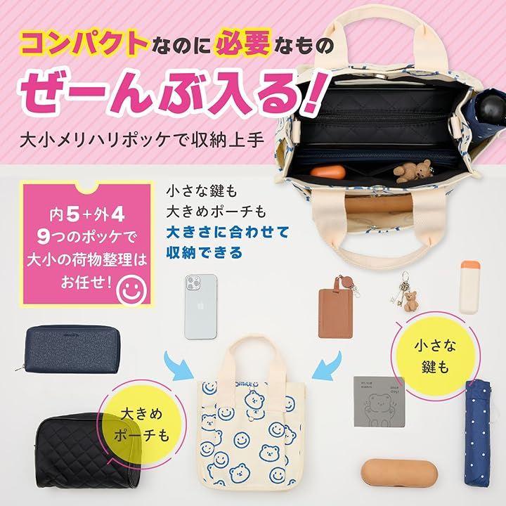 バッグが思ったより小さくて入らないを無くす為に、持ち物がここまで入る(目安)を見える化(画像内)。
