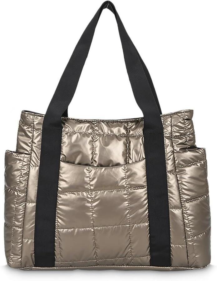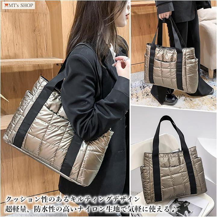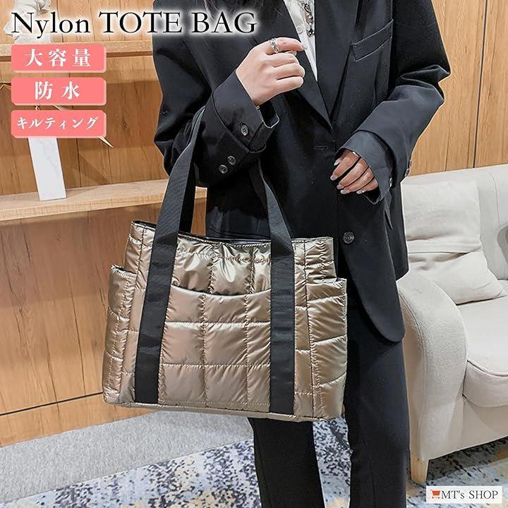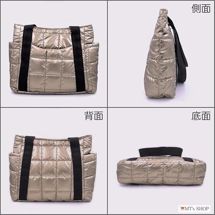 光沢のある生地がエレガントな雰囲気を醸し出す、たくさん入る大容量サイズのトートバッグ マザーズバッグです。