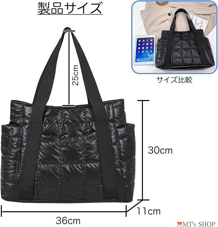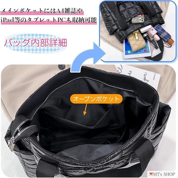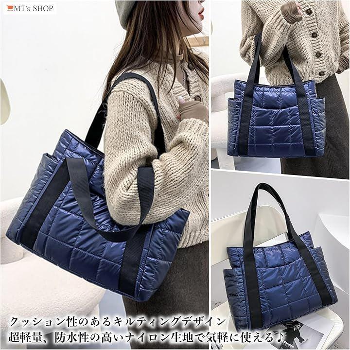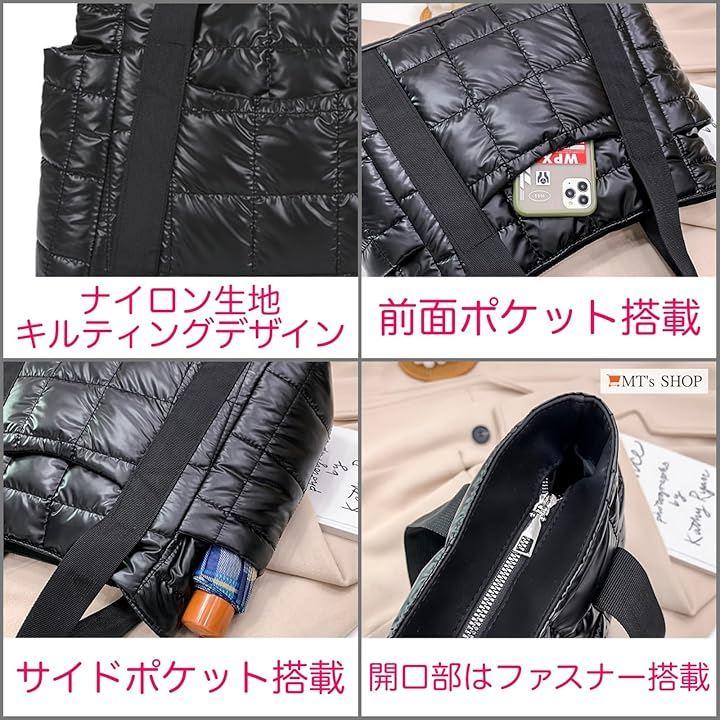 Tote bag for women, A4 size, large capacity, lightweight, glossy, quilted, fluffy, side pocket, shoulder bag, handbag, for mothers, for commuting, SH387