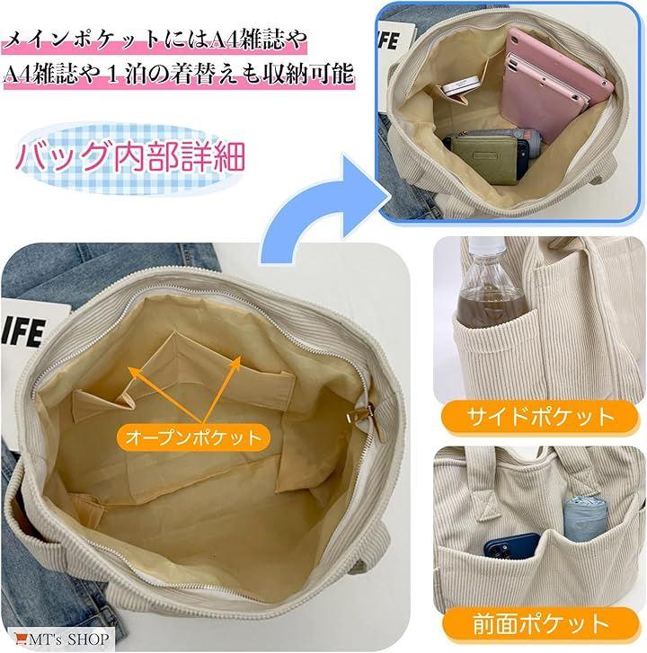 コーデュロイ生地の柔らかさが特徴で、程よいヴィンテージ感のある、たっぷり入る大容量タイプのトートバッグ、マザーズバッグです。