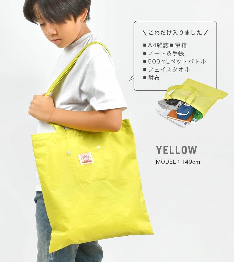 【トートバッグ】人気のGOODAYシリーズからトートバッグが登場。お手入れが簡単なナイロン素材で、厚手のアウターを着ていても肩にかけやすい持ち手の長さです。大人の使用も◎A4が入るサイズでサブバッグ、エコバッグとして普段使いに。