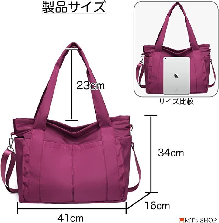 無地カラーの落ち着いた見た目が使いやすい、たくさん入る大容量サイズのトートバッグ ショルダーバッグです。