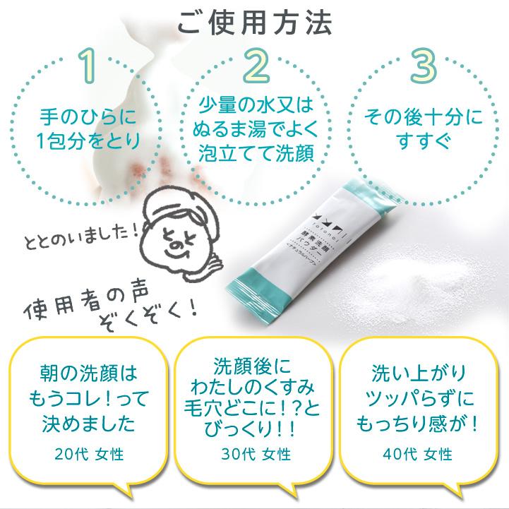 【こだわりポイント】酵素洗顔で、くすみ※1のない本来の素肌へ。すっきり落としてつっぱらない、クリアな洗い上がりの洗顔パウダー。ダブル酵素※2のチカラで毛穴に残った汚れや古い角質を取り除き、透明感のある、つるつる、すべすべのお肌に導きます。軽いメイクなら落とせます。ポイントメイクは専用のクレンジングをお使いください。お肌に優しい無添加(合成香料、保存料、着色料)で、お肌ととのう。※1 古い角質層が厚くなることで、肌がくすんで見える状態※2 パパイン、プロテアーゼ (整肌成分)【こんな方におすすめ】毛穴汚れが気になる方 角栓除去したい方 黒ずみが気になる方乾燥肌 脂性肌 混合肌 ツヤ肌 肌荒れ ニキビ にきび