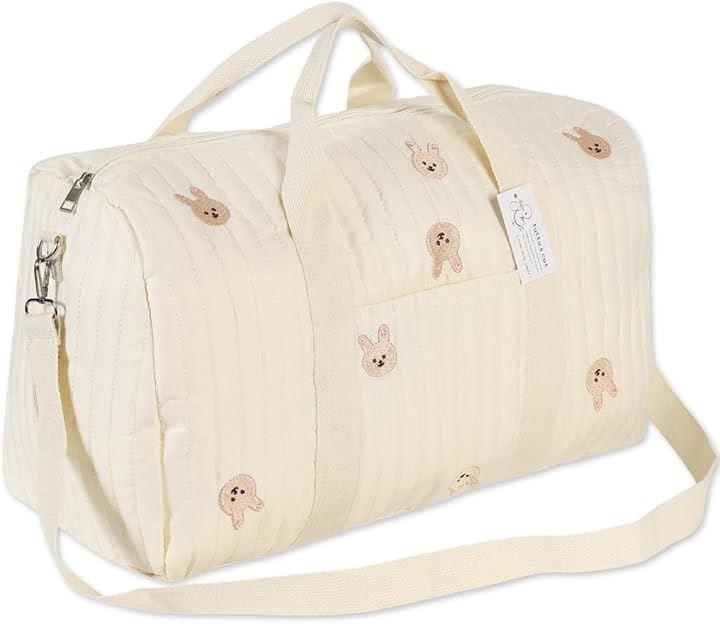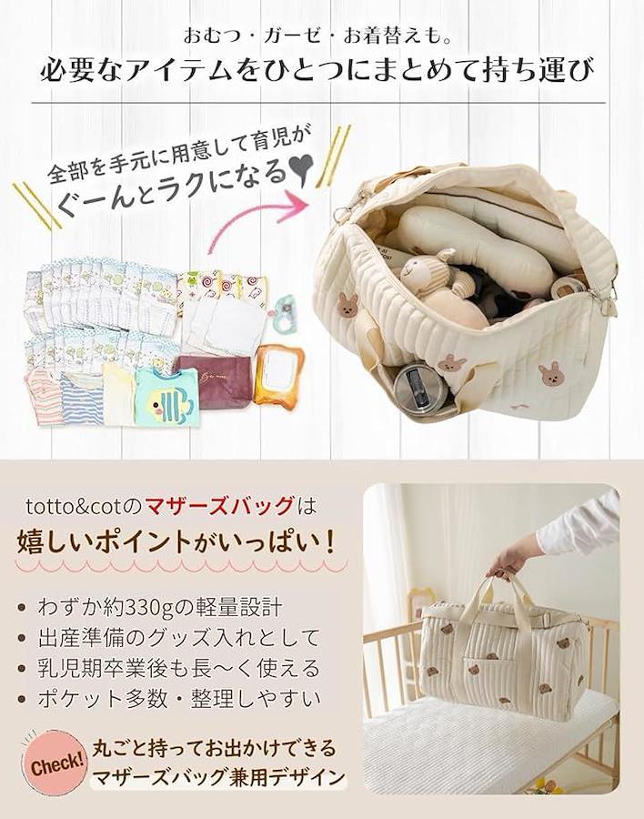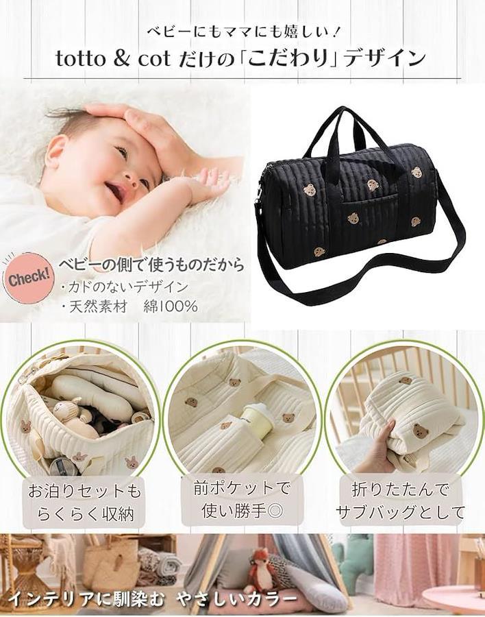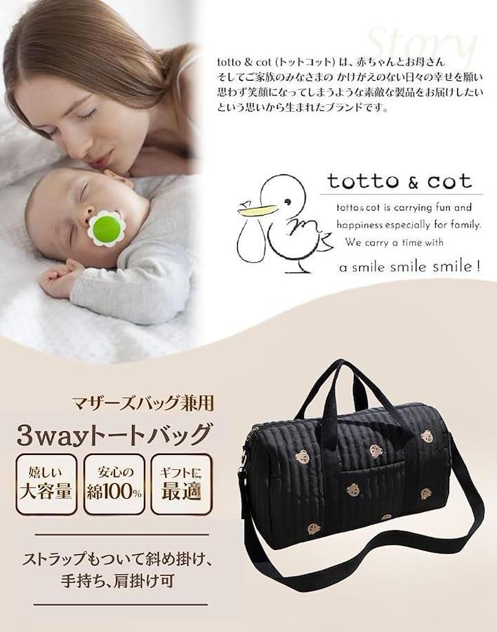 totto & cot Mother's Bag, Large Capacity, Lightweight Cotton, Quilted Design with Embroidery, Boston Bag, Shoulder Bag, Tote Bag, 3-Way Handbag, Perfect for Pregnancy