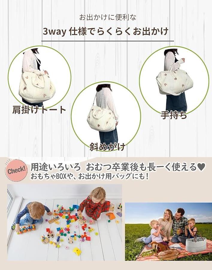たっぷり収納できる大容量サイズで、おむつ・哺乳瓶・着替え・おやつなどもラクラク収納。