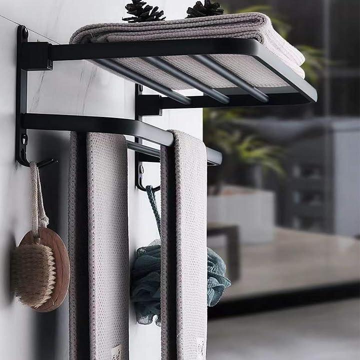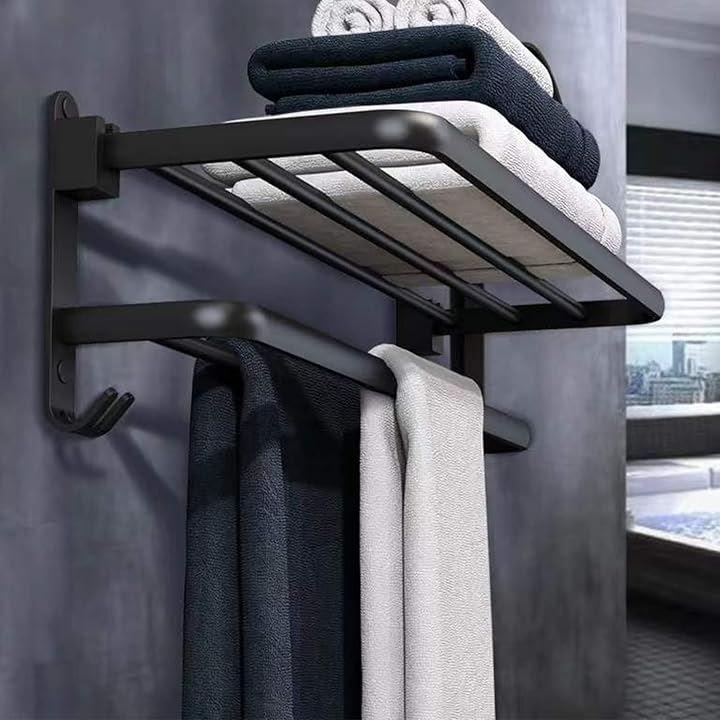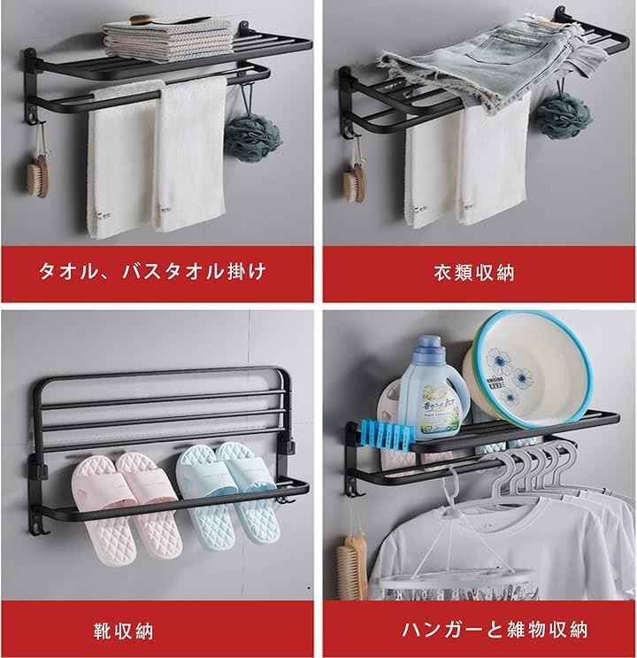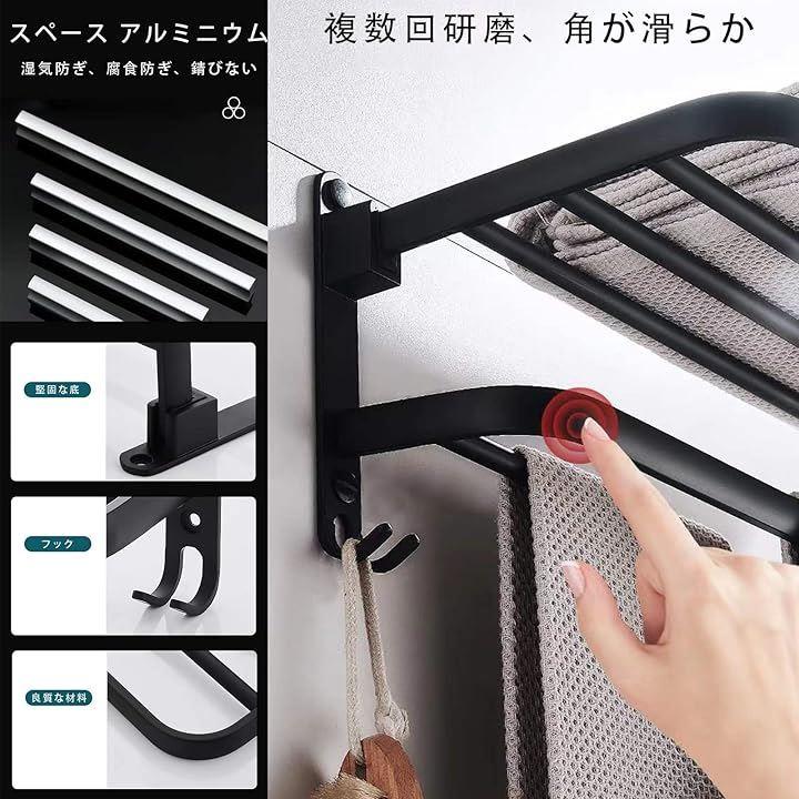 「製品仕様」商品名:タオル掛け / バスタオル ハンガー 本体サイズ: 39x23x18.7cm カラー:ブラック 材質:アルミニウム 設計:2層