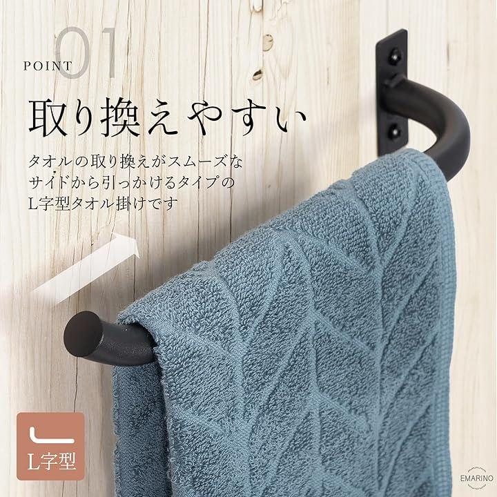 「タオルを取り換えやすい」デザイン性だけでなく、使いやすさにもこだわり設計されたL字型タイプは、両サイドを固定するタオル掛けと違い、サイドからサッと引っかけるだけのストレスフリー仕様がポイントです。