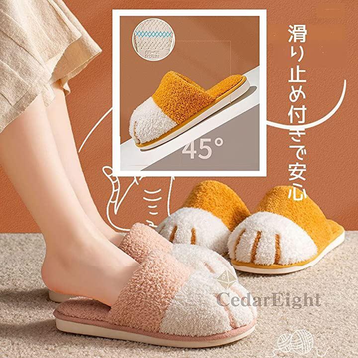 [シダーエイト]タオル地室内履きスリッパかわいい猫の手もこもこおしゃれ快適な履き心地ルームシューズ