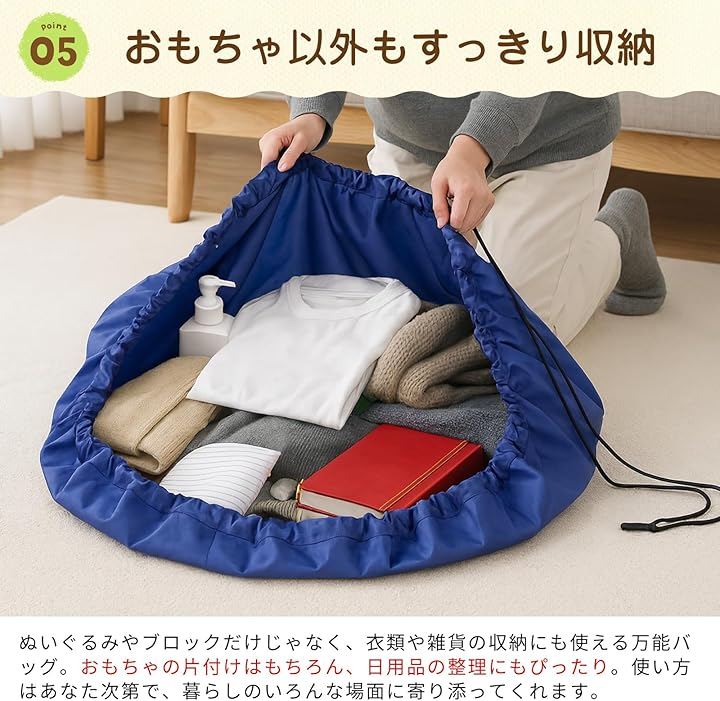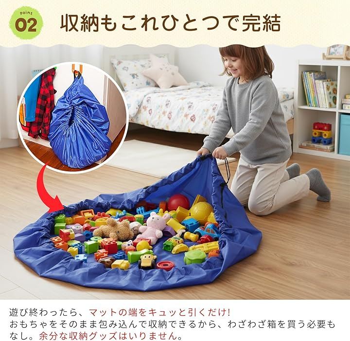 おもちゃ遊びの後は袋を引き絞るだけで収納完了。