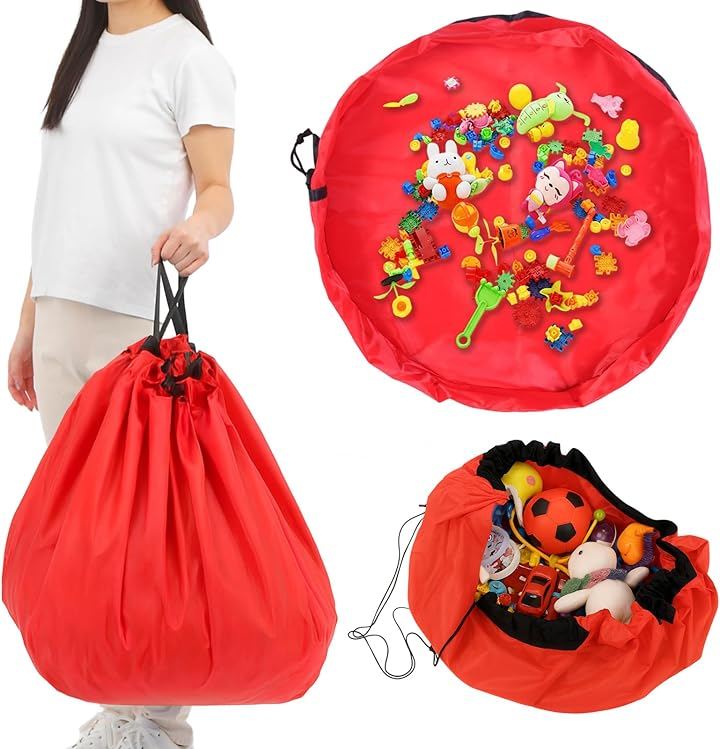 おもちゃをまとめて収納できる袋型で、レゴも積み木も入る大容量。