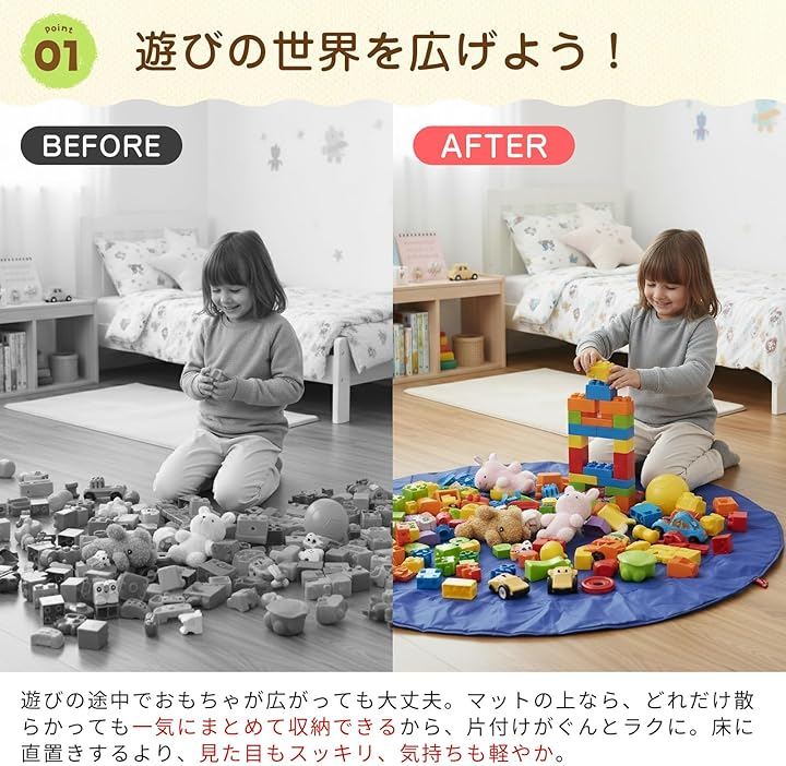 広げればレジャーシートとして使え、遊び場にもなるプレイマットです。