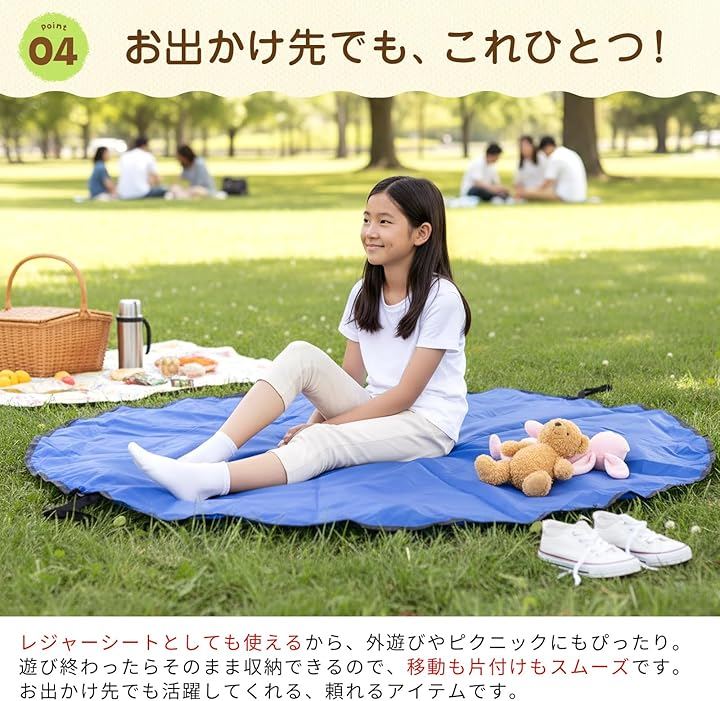 広げればレジャーシートになる、外でも使える優秀プレイマットです。