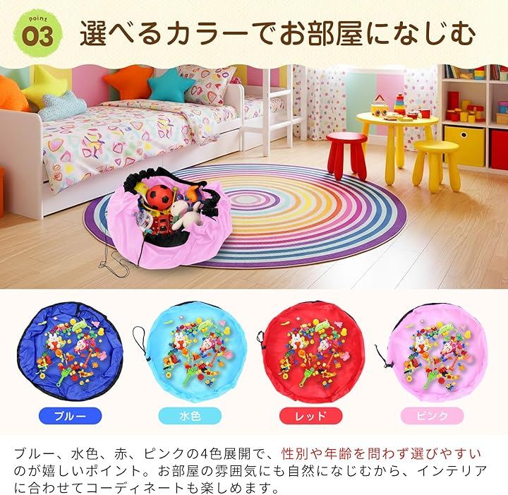 おもちゃ遊びの後は袋を引き絞るだけで収納完了。