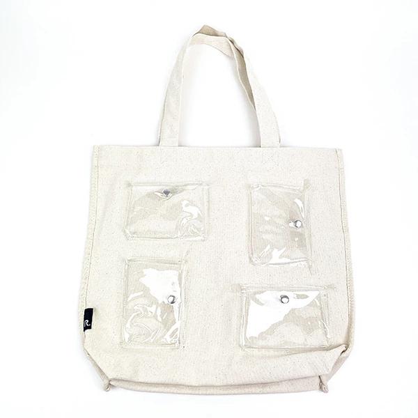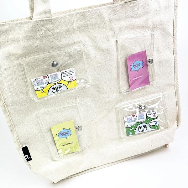 バッグの側面にクリアポケットが付いている商品で、推しグッズやぬいをアピールしながら持ち歩けます♪カプセルトイの詰め合わせが楽しめる4つのポケットがついたトートバッグです!クリアポケットにお気に入りのカプセルトイを詰め込んで、ブームとなっているガチャ詰めポーチが簡単に作れます♪自分らしさと「好き」を発信できるポケットは4か所です!自分だけの推し活トートを作りましょう~!!♪