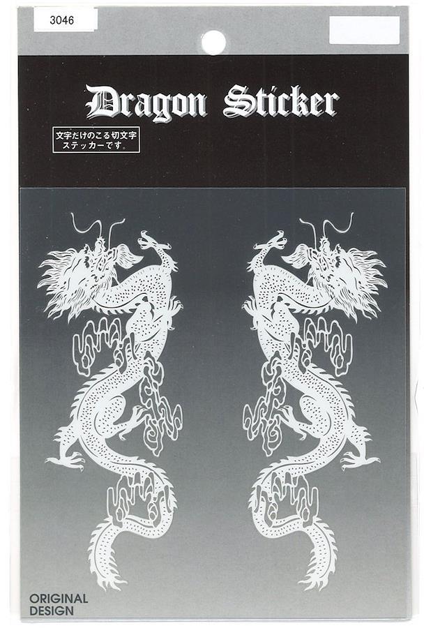 ドラゴン 大 縦 ホワイトテッカーです。デザインだけ残る切文字ステッカーです。