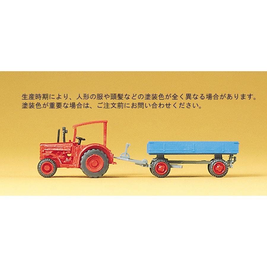 品番: 79502内容物: トラクター1台、トレーラー1台大きさ(トラクター): 全長約2.3cm、全高約2.6cm大きさ(トレーラー): 全長約3.7cm、全高約1cm備考: トラクターとトレーラーは連結可