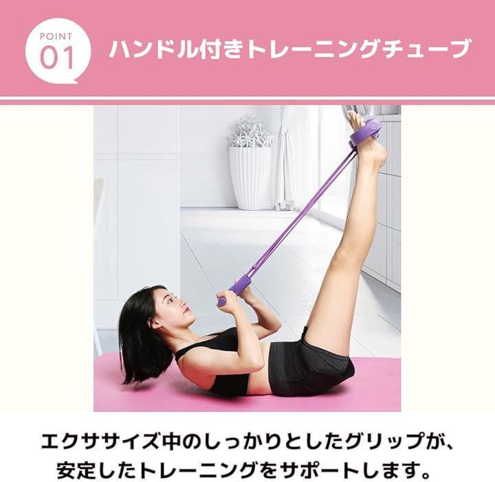 「ハンドル付きトレーニングチューブ」ハンドル付きのトレーニングチューブは、筋トレや腹筋運動に最適です。