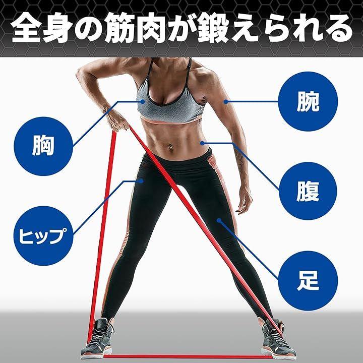 //全身トレーニングに対応する多用途バンド// 胸筋、腕、足、尻など、全身の筋肉をターゲットにした多様なエクササイズが可能。