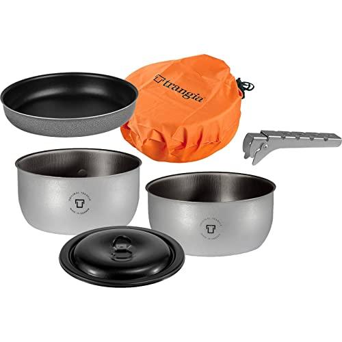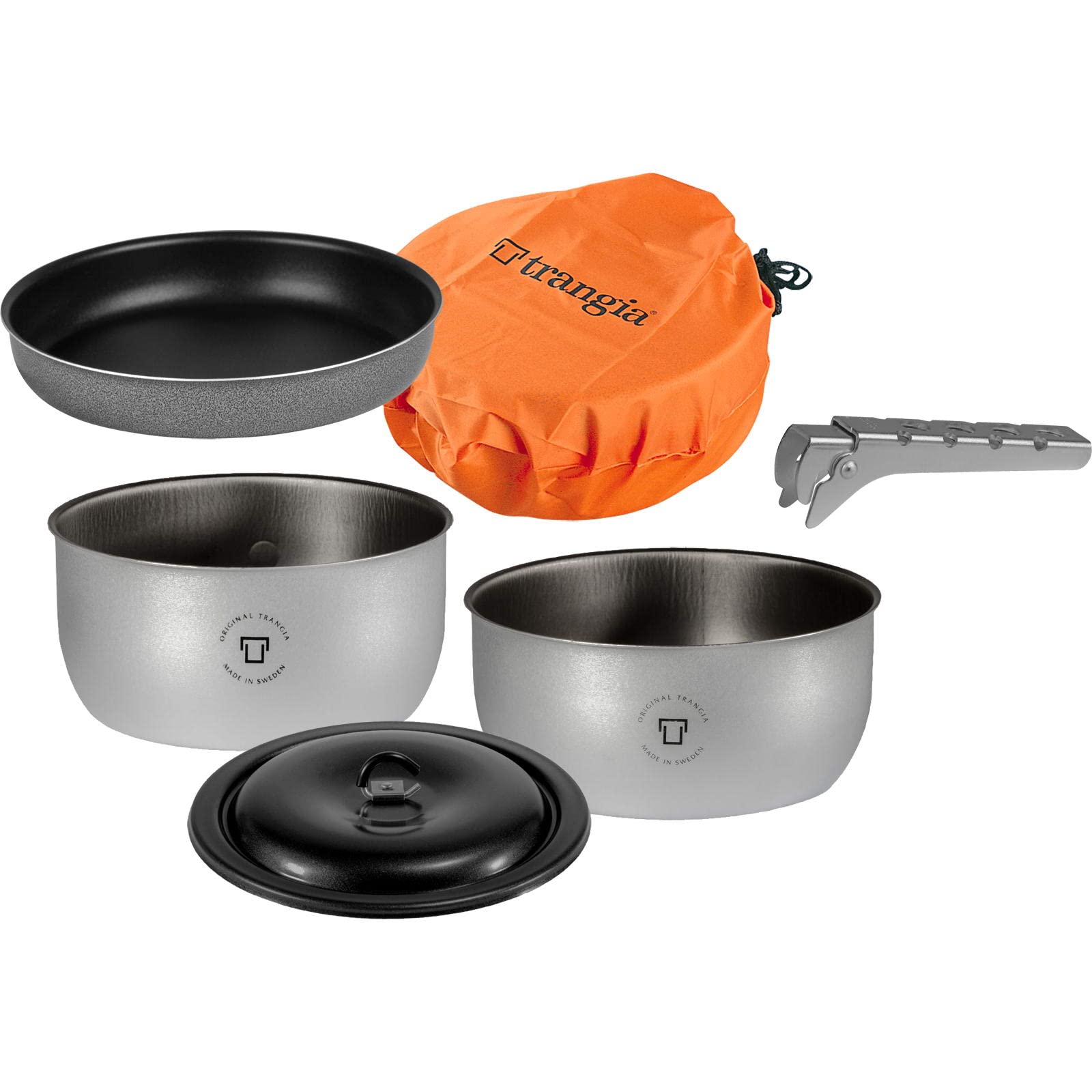 2~3人分の調理をするのに対応する2サイズのソースパンとフライパンがセットになった中型のクッキングセットです。ソースパンは熱伝導率の高いアルミを外側、耐久性の高いステンレスを内側に使用した二重構造になっていて、火の回りの良さと丈夫さを兼ね備えたモデルです。