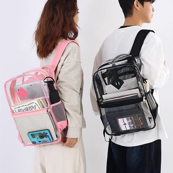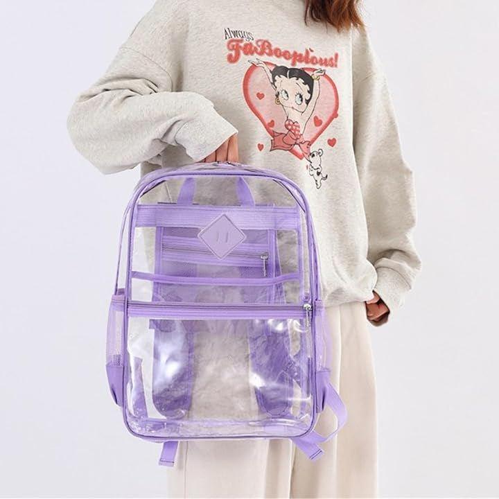 本商品は、中身がはっきり見えるPVCクリア素材を使用した透明リュックです。