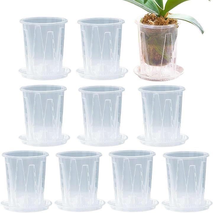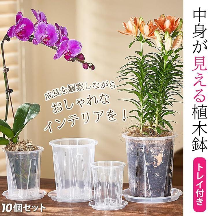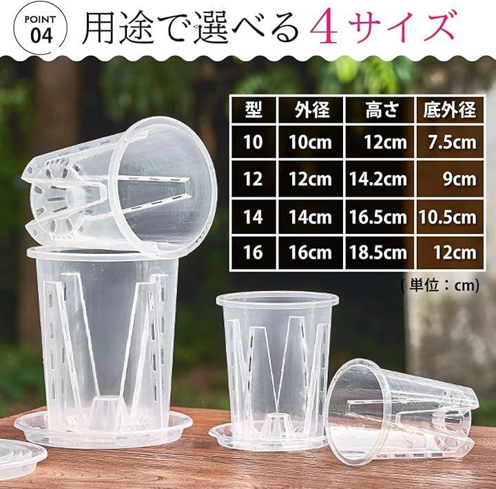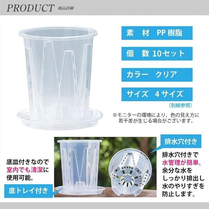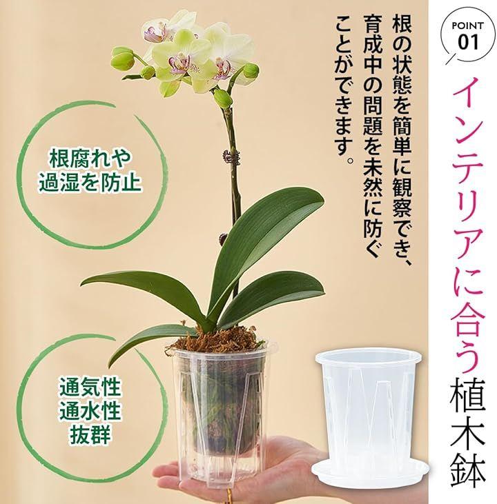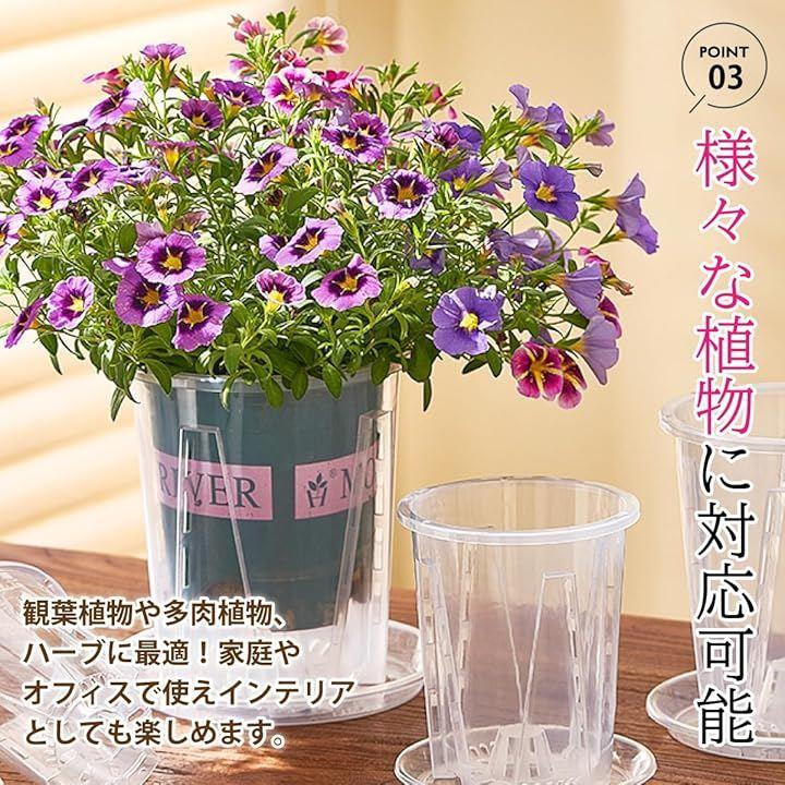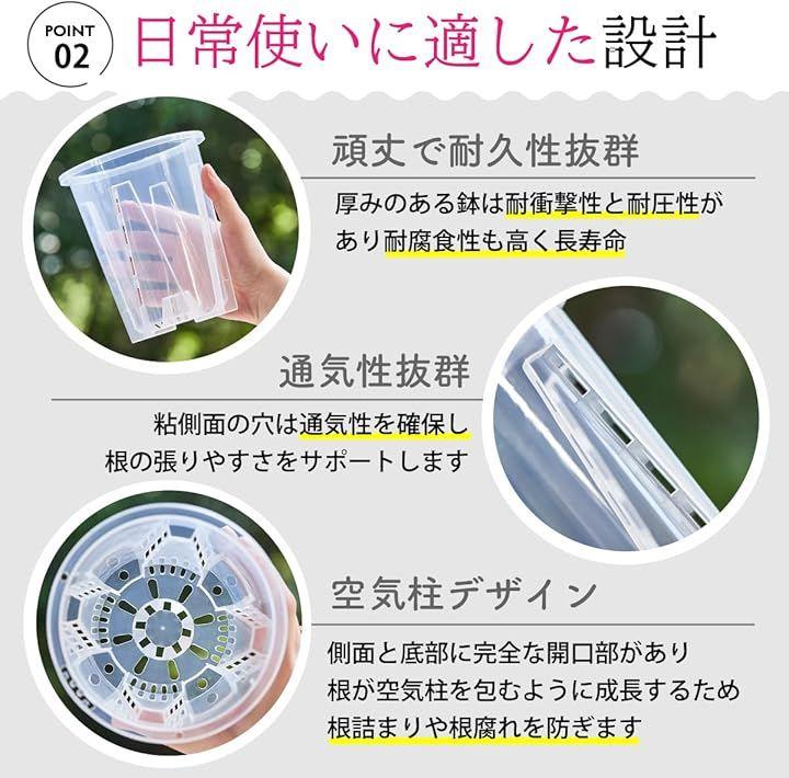 「スリット構造で根を健康に育てる設計」 透明スリット鉢は、側面から底部にかけて排水穴が施されており、優れた通気性と排水性を提供します。