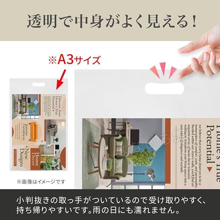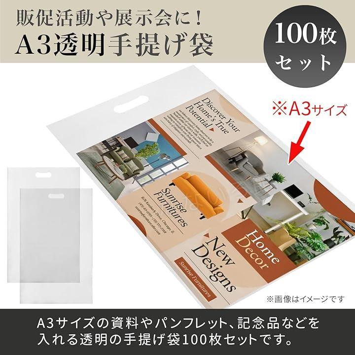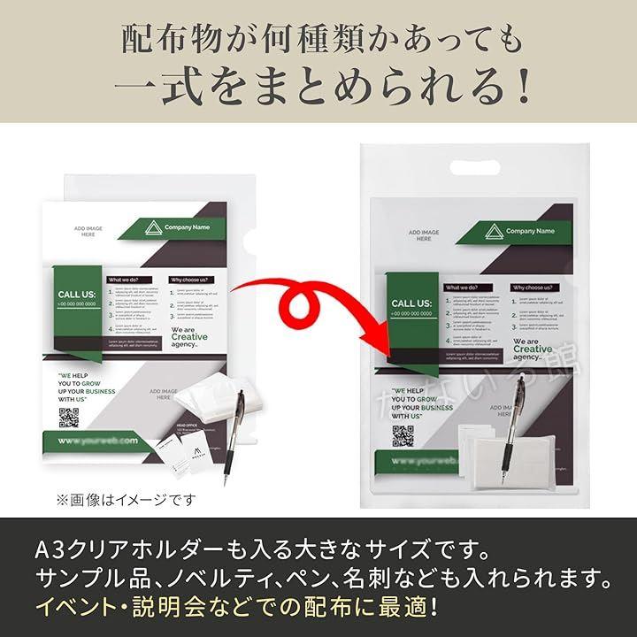 A3サイズの資料やパンフレット、記念品などを入れる透明の手提げ袋100枚セットです。