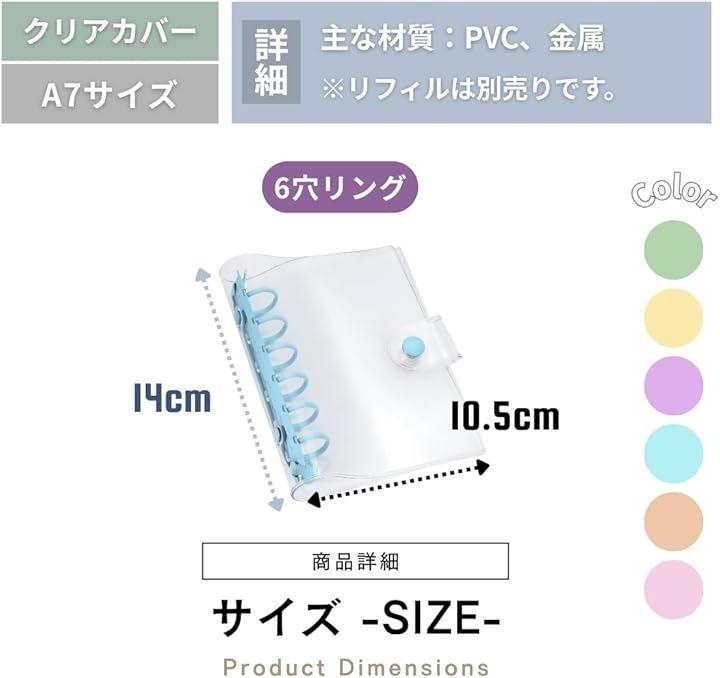 「商品内容」本体サイズ(約):タテ14cm ヨコ10.5cm リフィルサイズ:A7 材質:PVC、金属 *リフィルは別売りとなります。