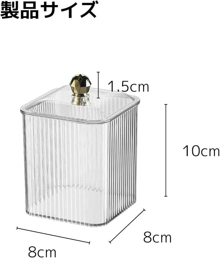 「蓋付き綿棒収納ボックス」 透明デザインで清潔&便利に収納。コスメ・綿棒・コットン収納に最適 「商品内容」 ・内容:収納ボックス(蓋付き) ・サイズ: 本体 約8x8x10cm 持ち手 1.5cm ・素材:高品質PETプラスチック(軽量・耐久・安全) 「高品質PET素材で長持ち」 本製品は無毒・無臭のPET素材を採用しており、軽量ながら高い耐久性を実現。