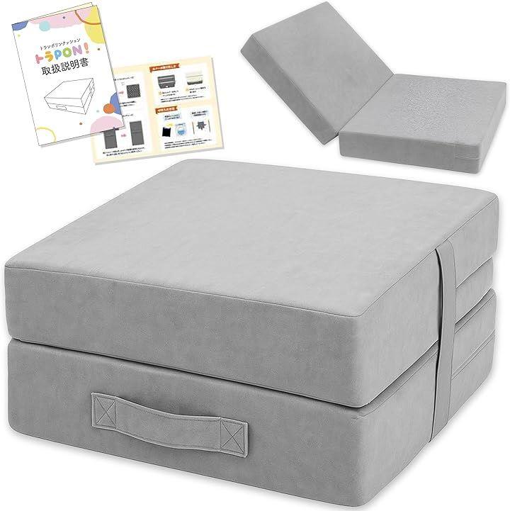 「多機能トランポリンクッション」折りたたんだ状態だと厚みのあるトランポリンモード、広げるとマットのようなワイドモードに。おしゃれなデザインでお部屋に馴染み、高反発素材で軽い力でもよく跳ね、大人の運動不足解消やエクササイズ、お子さまの遊びから体幹UPまで幅広く大活躍。